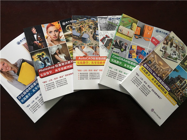 近日我校自主研发的高级office办公、平面设计Photoshop、室内设计auto CAD、3ds MAX、会计培训八大行业账等教材终于闪亮登场了!